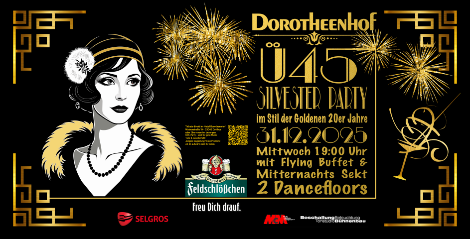 Feier mit uns die Goldenen 20er Jahre Silvester-Party das wird legendär! Erlebe eine Nacht voller Highlights, Musik, Tanz und unvergesslicher Stimmung. Einlass ab 19:00 Uhr bis 23:30 Uhr